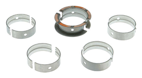 - Die Hauptlager sind in verschiedenen Maßen lieferbar. Es werden motorabhängig Standardmaßlager für ungeschliffene Kurbelwellen und 0.010" (0,25mm), 0.020" (0,50mm), 0.030" (0,75mm) und 0.040" (1,00mm) Untermaßlager für geschliffene Kurbelwellen angeboten. - Die Hauptlager der Clevite P-Serie sind die ältesten Mitglieder der Clevite 77-Lagerfamilie und sind für hochdrehende Motoren vorgesehen. Um die hohen Lastfaktoren und den Verzug in diesen Motoren auszugleichen, haben diese Lager eine höhere Exzentrizität und einen hohen Quetschfaktor. Die Lager der P-Serie bestehen aus trimetallischem Kupfergussblei. Sie haben einen Stahlrücken zur Unterstützung, eine gegossene Kupfer-Blei-Auskleidung, um den Belastungen des Motorbetriebs standzuhalten, und eine galvanisierte Babbit-Auflage auf der Lauffläche, um sengende Oberflächenqualitäten zu bieten. Darüber hinaus erstrecken sich die Ölnuten bei den meisten Anwendungen zur besseren Ölung um beide Hälften.